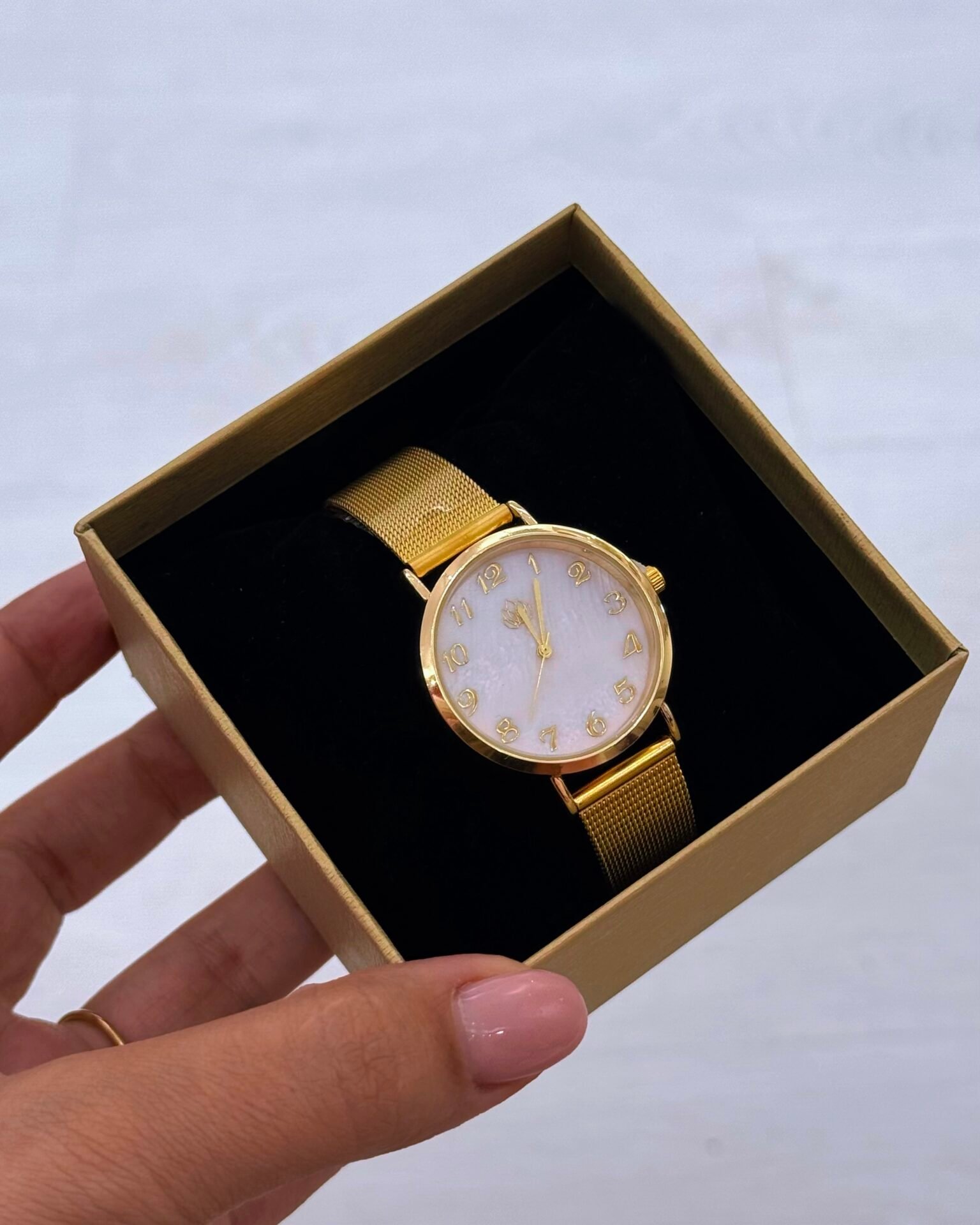 O Conjunto Belle Éternelle celebra a beleza que resiste ao tempo. De mostrador em madrepérola decorado com numeração dourada completa — símbolo da passagem das horas com presença e leveza — este relógio destaca-se por transmitir um encanto eterno em cada detalhe.